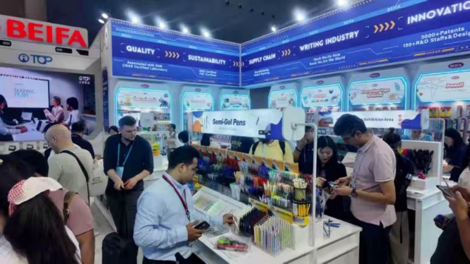 邱智铭是宁波贝发集团股份有限公司(以下简称贝发集团或贝发)董事长,被外界誉为“亚洲笔王”。其执掌的贝发集团占据中国笔类出口市场16.5%的份额,触达全球超17亿人。目前,贝发集团外贸业务收入占比约为85%。其中,欧洲市场占1/3,美国市场占1/3,发展中国家市场占1/3。