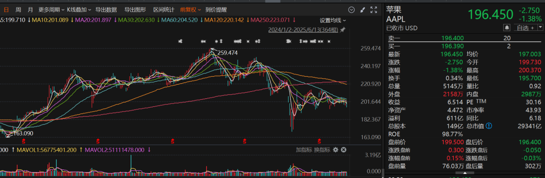 从苹果近期股价表现来看,同去年12月份的股价高点相比,跌幅超20%。