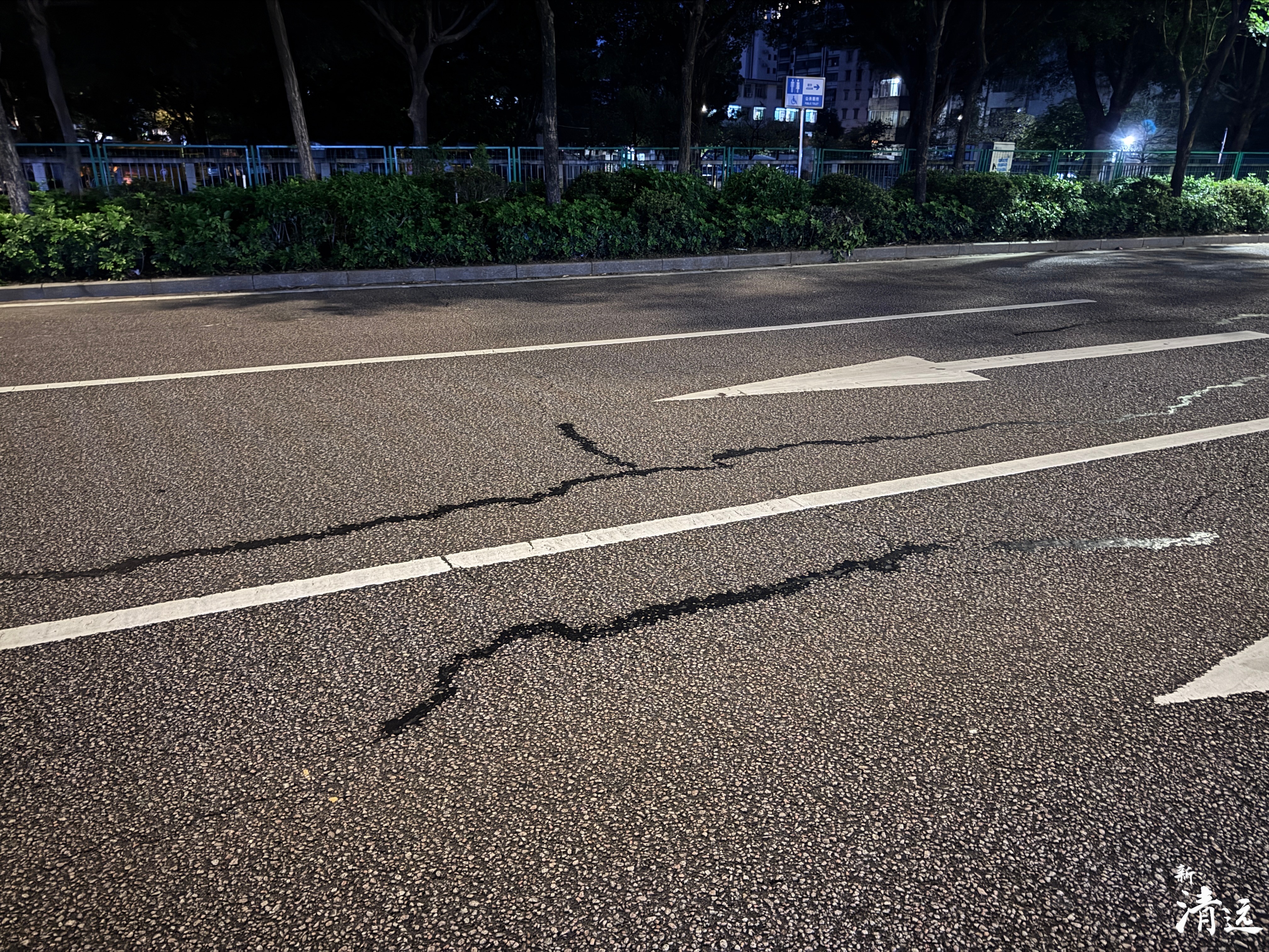还有有网友发照片称,清城区东城大道培英学校路段出现道路裂痕。